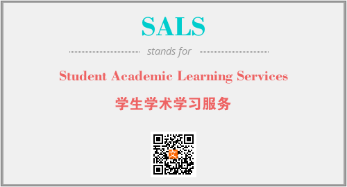 上述内容是“Student Academic Learning Services”作为“SALS”的缩写,解释为“学生学术学习服务”时的信息,以及英文缩略词SALS所代表的英文单词,其对应的中文拼音、详细解释以及在英文中的流行度和相关分类、应用领域及应用示例等。