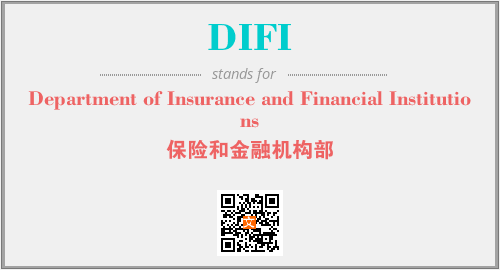 上述内容是“Department of Insurance and Financial Institutions”作为“DIFI”的缩写,解释为“保险和金融机构部”时的信息,以及英文缩略词DIFI所代表的英文单词,其对应的中文拼音、详细解释以及在英文中的流行度和相关分类、应用领域及应用示例等。