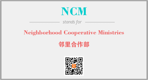 英文缩略词“NCM”经常作为“Neighborhood Cooperative Ministries”的英文缩写来使用,中文表示:“邻里合作部”。本文将详细介绍英文缩写词NCM所代表英文单词,其对应的中文拼音、详细解释以及在英语中的流行度。此外,还有关于缩略词NCM的分类、应用领域及相关应用示例等。