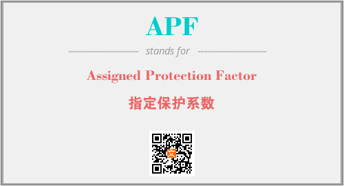 英文缩略词“APF”经常作为“Assigned Protection Factor”的英文缩写来使用,中文表示:“指定保护系数”。本文将详细介绍英文缩写词APF所代表英文单词,其对应的中文拼音、详细解释以及在英语中的流行度。此外,还有关于缩略词APF的分类、应用领域及相关应用示例等。