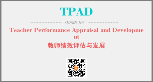 上述内容是“Teacher Performance Appraisal and Development”作为“TPAD”的缩写,解释为“教师绩效评估与发展”时的信息,以及英文缩略词TPAD所代表的英文单词,其对应的中文拼音、详细解释以及在英文中的流行度和相关分类、应用领域及应用示例等。