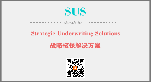 上述内容是“Strategic Underwriting Solutions”作为“SUS”的缩写,解释为“战略核保解决方案”时的信息,以及英文缩略词SUS所代表的英文单词,其对应的中文拼音、详细解释以及在英文中的流行度和相关分类、应用领域及应用示例等。