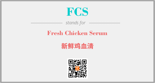 上述内容是“Fresh Chicken Serum”作为“FCS”的缩写,解释为“新鲜鸡血清”时的信息,以及英文缩略词FCS所代表的英文单词,其对应的中文拼音、详细解释以及在英文中的流行度和相关分类、应用领域及应用示例等。