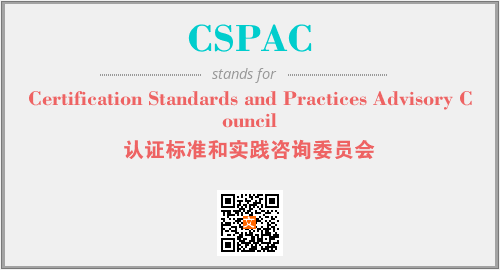 上述内容是“Certification Standards and Practices Advisory Council”作为“CSPAC”的缩写,解释为“认证标准和实践咨询委员会”时的信息,以及英文缩略词CSPAC所代表的英文单词,其对应的中文拼音、详细解释以及在英文中的流行度和相关分类、应用领域及应用示例等。