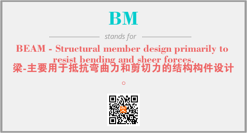 上述内容是“BEAM - Structural member design primarily to resist bending and sheer forces.”作为“BM”的缩写,解释为“梁-主要用于抵抗弯曲力和剪切力的结构构件设计。”时的信息,以及英文缩略词BM所代表的英文单词,其对应的中文拼音、详细解释以及在英文中的流行度和相关分类、应用领域及应用示例等。