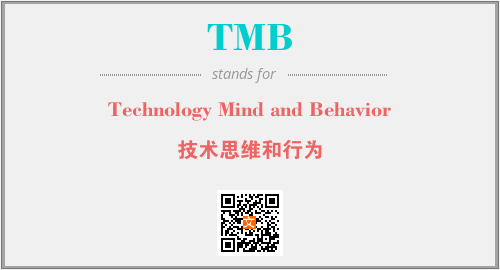 英文缩略词“TMB”经常作为“Technology Mind and Behavior”的英文缩写来使用,中文表示:“技术思维和行为”。本文将详细介绍英文缩写词TMB所代表英文单词,其对应的中文拼音、详细解释以及在英语中的流行度。此外,还有关于缩略词TMB的分类、应用领域及相关应用示例等。