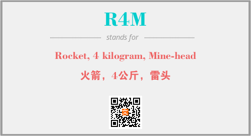 英文缩略词“R4M”经常作为“Rocket, 4 kilogram, Mine-head”的英文缩写来使用,中文表示:“火箭,4公斤,雷头”。本文将详细介绍英文缩写词R4M所代表英文单词,其对应的中文拼音、详细解释以及在英语中的流行度。此外,还有关于缩略词R4M的分类、应用领域及相关应用示例等。