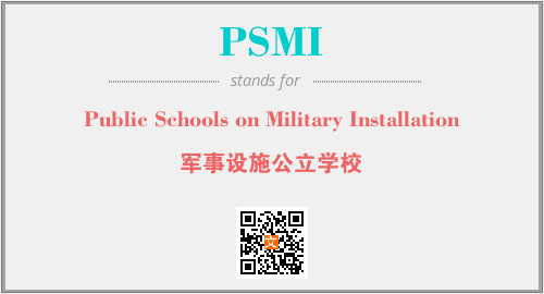 上述内容是“Public Schools on Military Installation”作为“PSMI”的缩写,解释为“军事设施公立学校”时的信息,以及英文缩略词PSMI所代表的英文单词,其对应的中文拼音、详细解释以及在英文中的流行度和相关分类、应用领域及应用示例等。