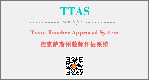 上述内容是“Texas Teacher Appraisal System”作为“TTAS”的缩写,解释为“德克萨斯州教师评估系统”时的信息,以及英文缩略词TTAS所代表的英文单词,其对应的中文拼音、详细解释以及在英文中的流行度和相关分类、应用领域及应用示例等。