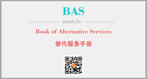 英文缩略词“BAS”经常作为“Book of Alternative Services”的英文缩写来使用,中文表示:“替代服务手册”。本文将详细介绍英文缩写词BAS所代表英文单词,其对应的中文拼音、详细解释以及在英语中的流行度。此外,还有关于缩略词BAS的分类、应用领域及相关应用示例等。