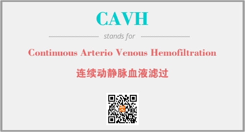 上述内容是“Continuous Arterio Venous Hemofiltration”作为“CAVH”的缩写,解释为“连续动静脉血液滤过”时的信息,以及英文缩略词CAVH所代表的英文单词,其对应的中文拼音、详细解释以及在英文中的流行度和相关分类、应用领域及应用示例等。