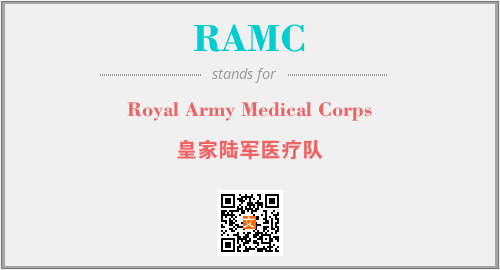 英文缩略词“RAMC”经常作为“Royal Army Medical Corps”的英文缩写来使用,中文表示:“皇家陆军医疗队”。本文将详细介绍英文缩写词RAMC所代表英文单词,其对应的中文拼音、详细解释以及在英语中的流行度。此外,还有关于缩略词RAMC的分类、应用领域及相关应用示例等。