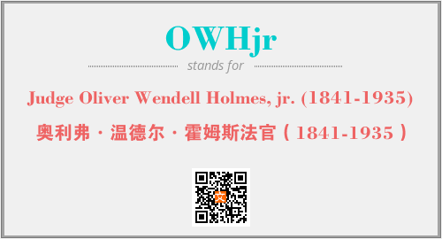 以上为Judge Oliver Wendell Holmes, jr. (1841-1935)英文缩略词OWHjr的中文解释,以及该英文缩写在英语的流行度、分类和应用领域方面的信息。
