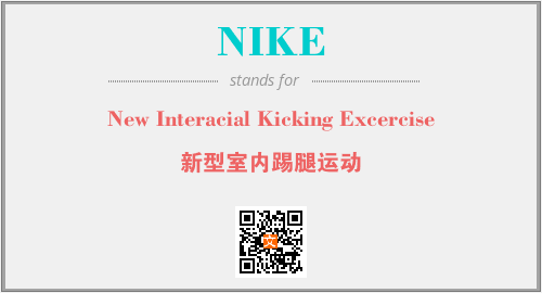 上述内容是“New Interacial Kicking Excercise”作为“NIKE”的缩写,解释为“新型室内踢腿运动”时的信息,以及英文缩略词NIKE所代表的英文单词,其对应的中文拼音、详细解释以及在英文中的流行度和相关分类、应用领域及应用示例等。