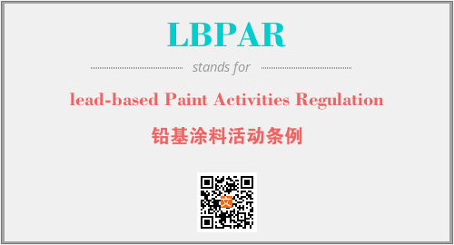 上述内容是“lead-based Paint Activities Regulation”作为“LBPAR”的缩写,解释为“铅基涂料活动条例”时的信息,以及英文缩略词LBPAR所代表的英文单词,其对应的中文拼音、详细解释以及在英文中的流行度和相关分类、应用领域及应用示例等。