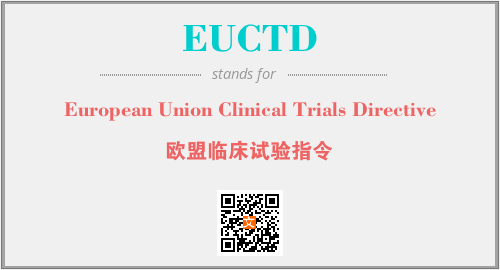 上述内容是“European Union Clinical Trials Directive”作为“EUCTD”的缩写,解释为“欧盟临床试验指令”时的信息,以及英文缩略词EUCTD所代表的英文单词,其对应的中文拼音、详细解释以及在英文中的流行度和相关分类、应用领域及应用示例等。