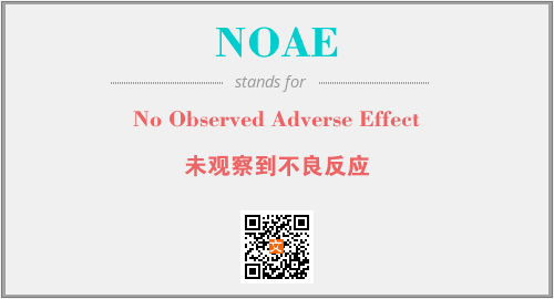 英文缩略词“NOAE”经常作为“No Observed Adverse Effect”的英文缩写来使用,中文表示:“未观察到不良反应”。本文将详细介绍英文缩写词NOAE所代表英文单词,其对应的中文拼音、详细解释以及在英语中的流行度。此外,还有关于缩略词NOAE的分类、应用领域及相关应用示例等。