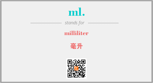 上述内容是“milliliter”作为“ml.”的缩写,解释为“毫升”时的信息,以及英文缩略词ml.所代表的英文单词,其对应的中文拼音、详细解释以及在英文中的流行度和相关分类、应用领域及应用示例等。
