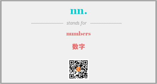 上述内容是“numbers”作为“nn.”的缩写,解释为“数字”时的信息,以及英文缩略词nn.所代表的英文单词,其对应的中文拼音、详细解释以及在英文中的流行度和相关分类、应用领域及应用示例等。