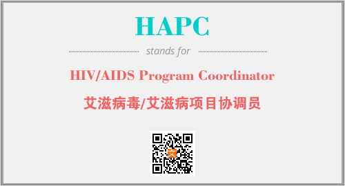 英文缩略词“HAPC”经常作为“HIV/AIDS Program Coordinator”的英文缩写来使用,中文表示:“艾滋病毒/艾滋病项目协调员”。本文将详细介绍英文缩写词HAPC所代表英文单词,其对应的中文拼音、详细解释以及在英语中的流行度。此外,还有关于缩略词HAPC的分类、应用领域及相关应用示例等。