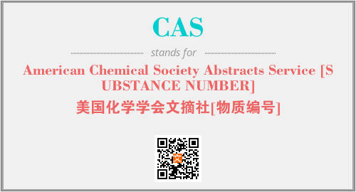 上述内容是“American Chemical Society Abstracts Service [SUBSTANCE NUMBER]”作为“CAS”的缩写,解释为“美国化学学会文摘社[物质编号]”时的信息,以及英文缩略词CAS所代表的英文单词,其对应的中文拼音、详细解释以及在英文中的流行度和相关分类、应用领域及应用示例等。