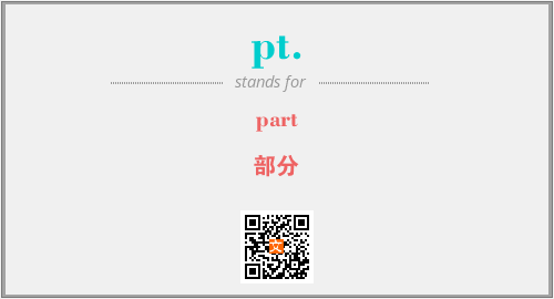 上述内容是“part”作为“pt.”的缩写,解释为“部分”时的信息,以及英文缩略词pt.所代表的英文单词,其对应的中文拼音、详细解释以及在英文中的流行度和相关分类、应用领域及应用示例等。