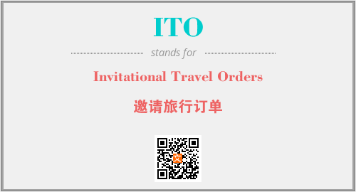 英文缩略词“ITO”经常作为“Invitational Travel Orders”的英文缩写来使用,中文表示:“邀请旅行订单”。本文将详细介绍英文缩写词ITO所代表英文单词,其对应的中文拼音、详细解释以及在英语中的流行度。此外,还有关于缩略词ITO的分类、应用领域及相关应用示例等。