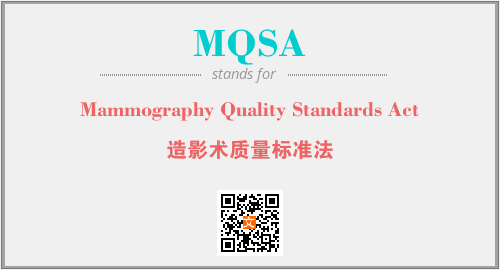 上述内容是“Mammography Quality Standards Act”作为“MQSA”的缩写,解释为“造影术质量标准法”时的信息,以及英文缩略词MQSA所代表的英文单词,其对应的中文拼音、详细解释以及在英文中的流行度和相关分类、应用领域及应用示例等。
