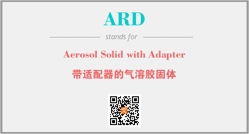 上述内容是“Aerosol Solid with Adapter”作为“ARD”的缩写,解释为“带适配器的气溶胶固体”时的信息,以及英文缩略词ARD所代表的英文单词,其对应的中文拼音、详细解释以及在英文中的流行度和相关分类、应用领域及应用示例等。