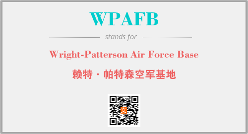 英文缩略词“WPAFB”经常作为“Wright-Patterson Air Force Base”的英文缩写来使用,中文表示:“赖特·帕特森空军基地”。本文将详细介绍英文缩写词WPAFB所代表英文单词,其对应的中文拼音、详细解释以及在英语中的流行度。此外,还有关于缩略词WPAFB的分类、应用领域及相关应用示例等。
