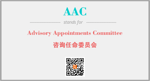 上述内容是“Advisory Appointments Committee”作为“AAC”的缩写,解释为“咨询任命委员会”时的信息,以及英文缩略词AAC所代表的英文单词,其对应的中文拼音、详细解释以及在英文中的流行度和相关分类、应用领域及应用示例等。