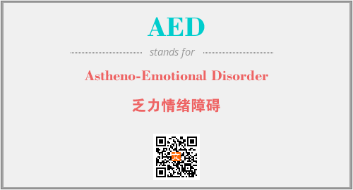 以上为Astheno-Emotional Disorder英文缩略词AED的中文解释,以及该英文缩写在英语的流行度、分类和应用领域方面的信息。
