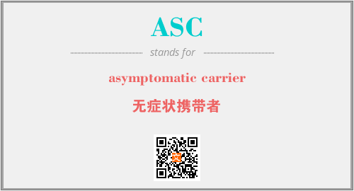 上述内容是“asymptomatic carrier”作为“ASC”的缩写,解释为“无症状携带者”时的信息,以及英文缩略词ASC所代表的英文单词,其对应的中文拼音、详细解释以及在英文中的流行度和相关分类、应用领域及应用示例等。
