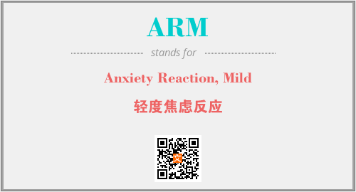 英文缩略词“ARM”经常作为“Anxiety Reaction, Mild”的英文缩写来使用,中文表示:“轻度焦虑反应”。本文将详细介绍英文缩写词ARM所代表英文单词,其对应的中文拼音、详细解释以及在英语中的流行度。此外,还有关于缩略词ARM的分类、应用领域及相关应用示例等。