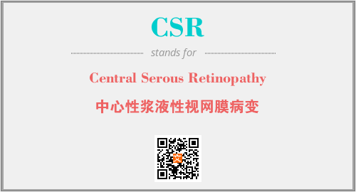 上述内容是“Central Serous Retinopathy”作为“CSR”的缩写,解释为“中心性浆液性视网膜病变”时的信息,以及英文缩略词CSR所代表的英文单词,其对应的中文拼音、详细解释以及在英文中的流行度和相关分类、应用领域及应用示例等。
