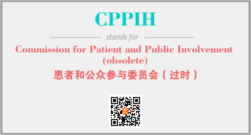 上述内容是“Commission for Patient and Public Involvement (obsolete)”作为“CPPIH”的缩写,解释为“患者和公众参与委员会(过时)”时的信息,以及英文缩略词CPPIH所代表的英文单词,其对应的中文拼音、详细解释以及在英文中的流行度和相关分类、应用领域及应用示例等。