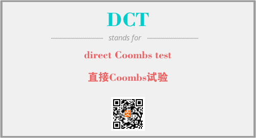 上述内容是“direct Coombs test”作为“DCT”的缩写,解释为“直接Coombs试验”时的信息,以及英文缩略词DCT所代表的英文单词,其对应的中文拼音、详细解释以及在英文中的流行度和相关分类、应用领域及应用示例等。