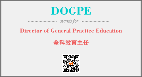 英文缩略词“DOGPE”经常作为“Director of General Practice Education”的英文缩写来使用,中文表示:“全科教育主任”。本文将详细介绍英文缩写词DOGPE所代表英文单词,其对应的中文拼音、详细解释以及在英语中的流行度。此外,还有关于缩略词DOGPE的分类、应用领域及相关应用示例等。
