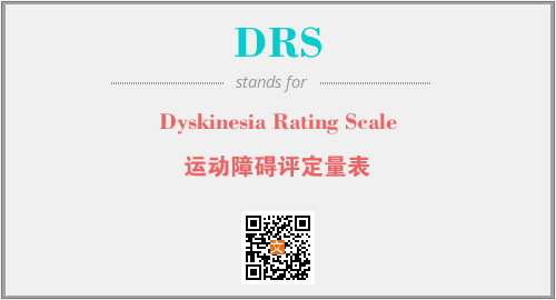 上述内容是“Dyskinesia Rating Scale”作为“DRS”的缩写,解释为“运动障碍评定量表”时的信息,以及英文缩略词DRS所代表的英文单词,其对应的中文拼音、详细解释以及在英文中的流行度和相关分类、应用领域及应用示例等。