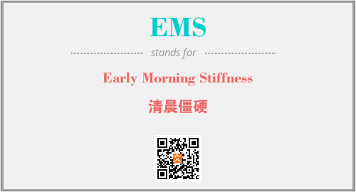 以上为Early Morning Stiffness英文缩略词EMS的中文解释,以及该英文缩写在英语的流行度、分类和应用领域方面的信息。