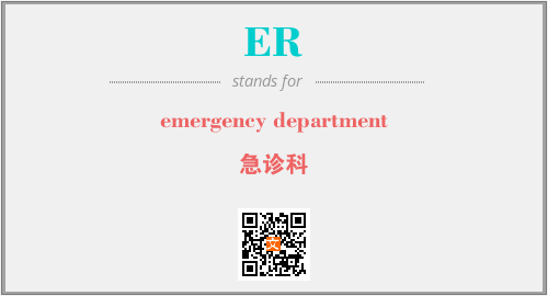 英文缩略词“ER”经常作为“emergency department”的英文缩写来使用,中文表示:“急诊科”。本文将详细介绍英文缩写词ER所代表英文单词,其对应的中文拼音、详细解释以及在英语中的流行度。此外,还有关于缩略词ER的分类、应用领域及相关应用示例等。