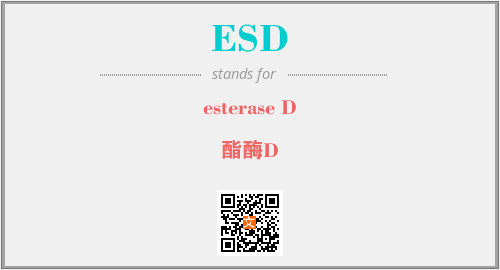 上述内容是“esterase D”作为“ESD”的缩写,解释为“酯酶D”时的信息,以及英文缩略词ESD所代表的英文单词,其对应的中文拼音、详细解释以及在英文中的流行度和相关分类、应用领域及应用示例等。