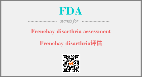 英文缩略词“FDA”经常作为“Frenchay disarthria assessment”的英文缩写来使用,中文表示:“Frenchay disarthria评估”。本文将详细介绍英文缩写词FDA所代表英文单词,其对应的中文拼音、详细解释以及在英语中的流行度。此外,还有关于缩略词FDA的分类、应用领域及相关应用示例等。