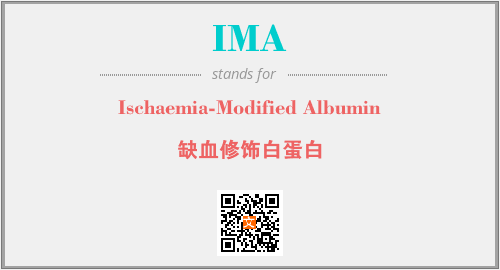 上述内容是“Ischaemia-Modified Albumin”作为“IMA”的缩写,解释为“缺血修饰白蛋白”时的信息,以及英文缩略词IMA所代表的英文单词,其对应的中文拼音、详细解释以及在英文中的流行度和相关分类、应用领域及应用示例等。