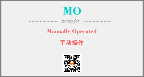 英文缩略词“MO”经常作为“Manually Operated”的英文缩写来使用,中文表示:“手动操作”。本文将详细介绍英文缩写词MO所代表英文单词,其对应的中文拼音、详细解释以及在英语中的流行度。此外,还有关于缩略词MO的分类、应用领域及相关应用示例等。