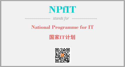 英文缩略词“NPfIT”经常作为“National Programme for IT”的英文缩写来使用,中文表示:“国家IT计划”。本文将详细介绍英文缩写词NPfIT所代表英文单词,其对应的中文拼音、详细解释以及在英语中的流行度。此外,还有关于缩略词NPfIT的分类、应用领域及相关应用示例等。