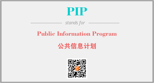上述内容是“Public Information Program”作为“PIP”的缩写,解释为“公共信息计划”时的信息,以及英文缩略词PIP所代表的英文单词,其对应的中文拼音、详细解释以及在英文中的流行度和相关分类、应用领域及应用示例等。