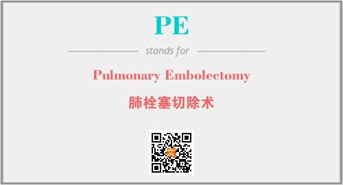 英文缩略词“PE”经常作为“Pulmonary Embolectomy”的英文缩写来使用,中文表示:“肺栓塞切除术”。本文将详细介绍英文缩写词PE所代表英文单词,其对应的中文拼音、详细解释以及在英语中的流行度。此外,还有关于缩略词PE的分类、应用领域及相关应用示例等。