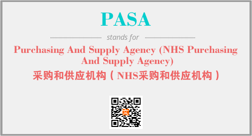 以上为Purchasing And Supply Agency (NHS Purchasing And Supply Agency)英文缩略词PASA的中文解释,以及该英文缩写在英语的流行度、分类和应用领域方面的信息。