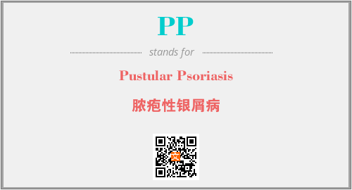 上述内容是“Pustular Psoriasis”作为“PP”的缩写,解释为“脓疱性银屑病”时的信息,以及英文缩略词PP所代表的英文单词,其对应的中文拼音、详细解释以及在英文中的流行度和相关分类、应用领域及应用示例等。